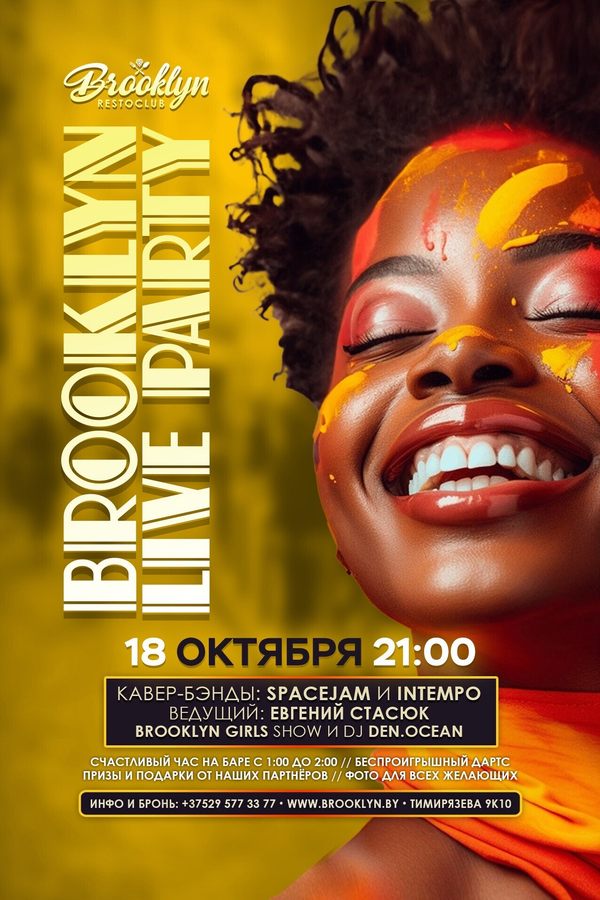 Ночь, когда Бруклин станет эпицентром веселья! Кавер-группы, взрывные танцы шоу-балета, харизматичный ведущий и диджей, которые знают секрет идеального праздника. А с 1:00 до 2:00 бар приготовил для тебя горячее предложение. Успевай забронировать столик!