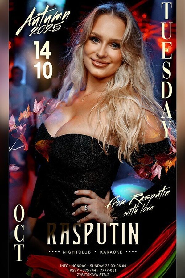 14 октября, в этот вторник, мы постараемся сделать вечер в нашей компании уютным. Качественный свет и звук, освежающие коктейли и напитки, и по-домашнему вкусные блюда будут баловать и угождать притязательному вкусу.