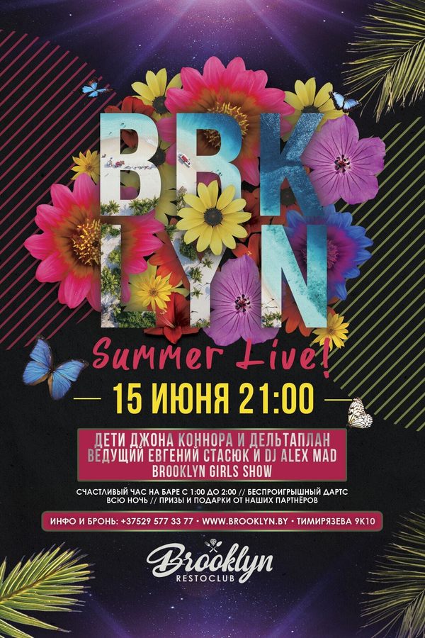 Проведи незабываемую ночь на вечеринке Summer Live! в ресторане Бруклин. Тебя ждут кавер-бенды, ведущие и яркий шоу-балет, чтобы создать атмосферу праздника и танцев. Любимые напитки и еда с неповторимой шоу-программой. До встречи!