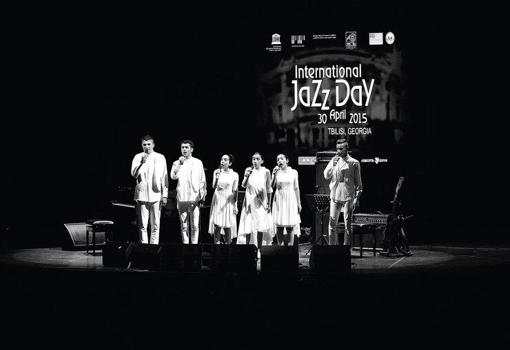 Для справки: Идея создания джазового ансамбля, способного исполнять чрезвычайно сложные вокальные аранжировки с легкостью и профессионализмом, принадлежит американо-грузинскому продюсеру Буке Картозиа. Процесс кастинга был долгим и трудным, в результате в коллектив вошли шестеро безусловно одаренных молодых музыкантов. Группа стала популярной в мгновение ока. От выступлений на грузинских фестивалях — к европейским гастролям и Карнеги-холлу в Нью-Йорке: The Quintessence прошли этот путь за несколько лет.