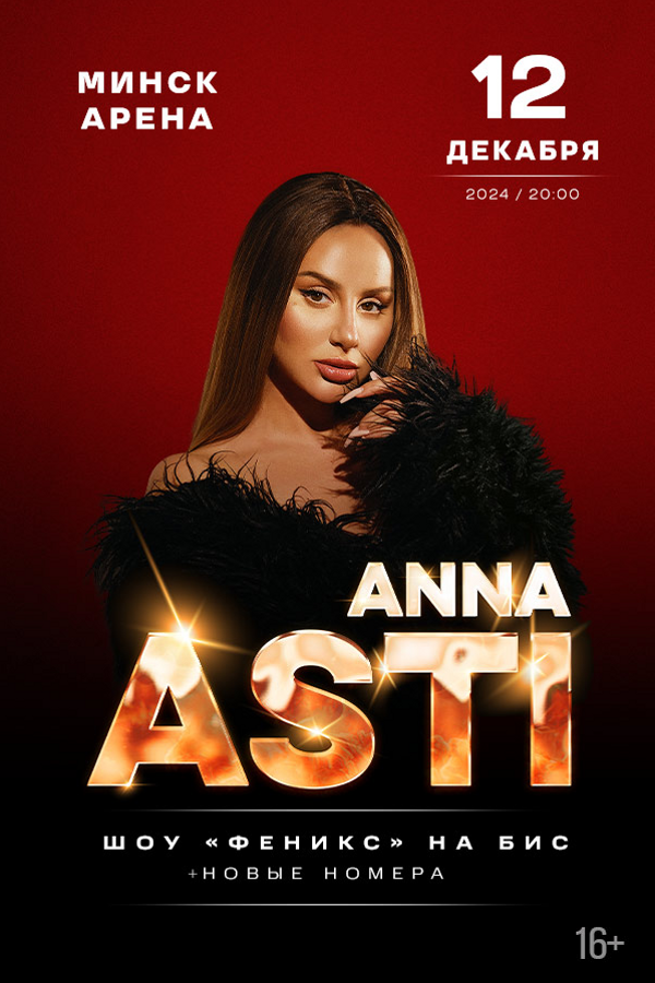 По многочисленным просьбам , 12 декабря Анна Asti выступит на бис со своим грандиозным шоу «Феникс» на сцене Минск-Арены. Последний шанс стать частью потрясающего праздника! Шоу, созданное большим количеством профессионалов и, конечно, самой артисткой, является уникальным. Шанса его увидеть в Беларуси больше не будет, поскольку ANNA ASTI выступает с ним в Минске в последний раз. Не упустите возможность купить билет, и конечно, сохраните его, ведь этот вечер наверняка станет незабываемым!