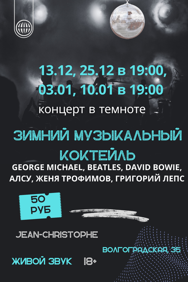 Концерт в темноте — это совершенно другой концерт, попав на который музыка становится осязаемой и делает ваши впечатления волшебными. Это именно то, что нужно для создания праздничного настроения зимой.