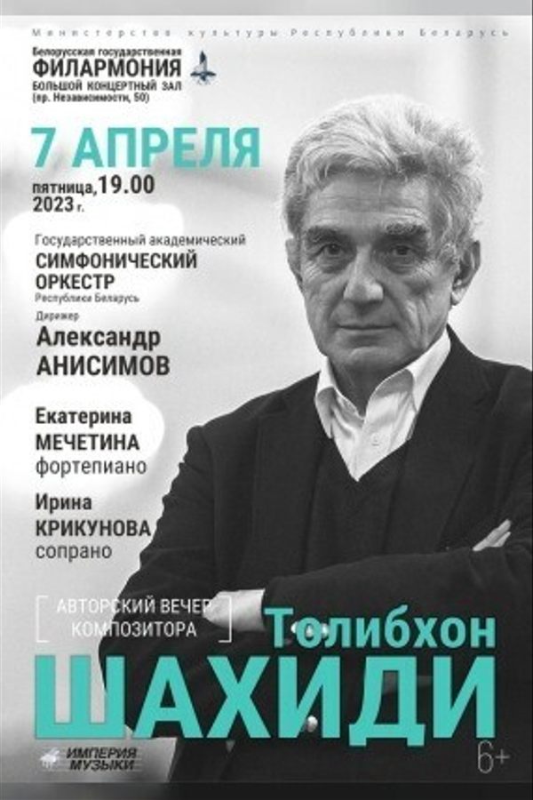 Впервые в Беларуси! 7 апреля в Большом зале Белгосфилармонии состоится авторский вечер известного российского и таджикского композитора, народного артиста Республики Таджикистан, лауреата Государственной премии им.Рудаки, члена Союза композиторов и Союза кинематографистов России Толибхона Шахиди.