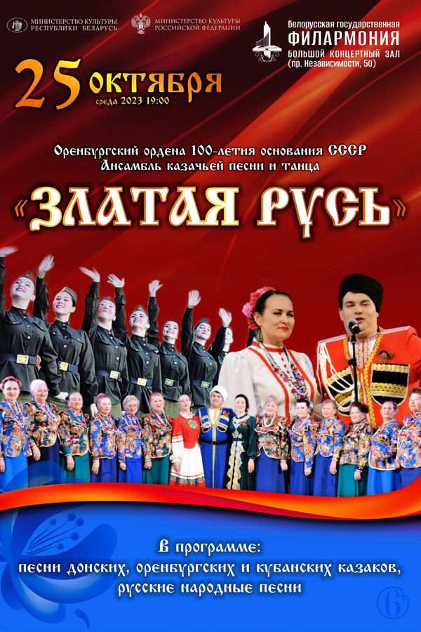 В рамках проекта «Большие гастроли в Республике Беларусь» 28 октября 2023 года на сцене Белорусской государственной филармонии пройдет концерт Ансамбля казачьей песни и танца «Златая Русь».
