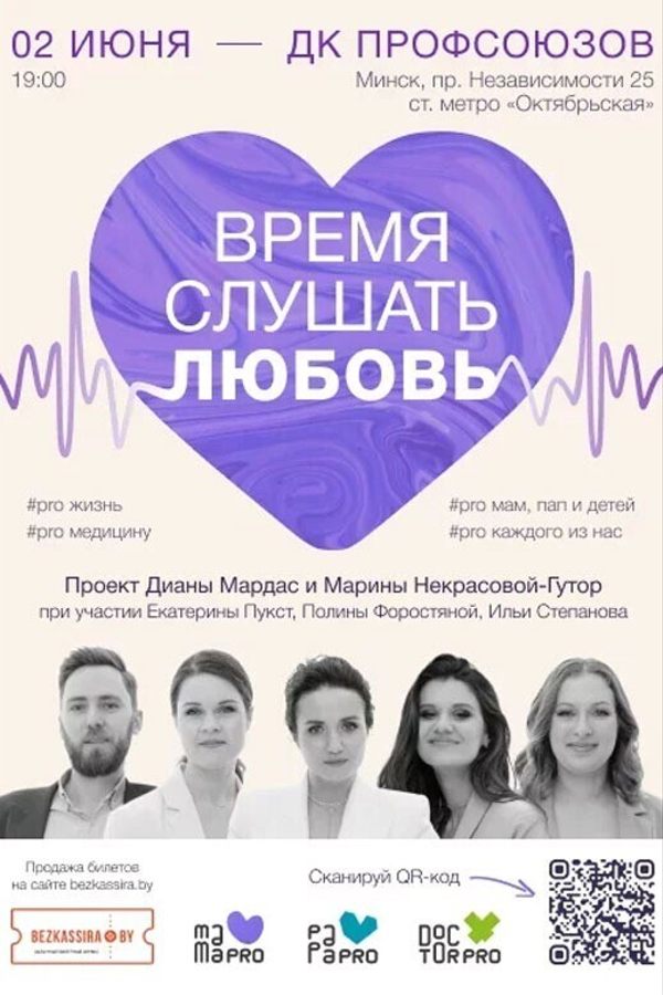 В этот вечер вы поговорите с Доктором Дианой Мардас по душам. Марина Некрасова-Гутор и команда профессиональных музыкантов создадут для этого разговора потрясающую атмосферу! Это будет не типичный, но очень терапевтический «врачебный прием». Так о родительстве, жизни и медицине еще не говорили.