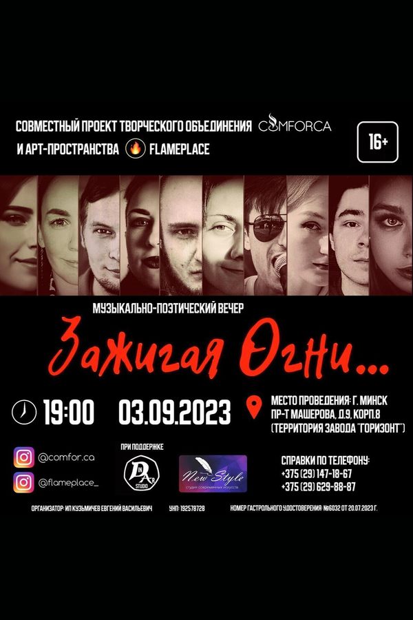 Авторская поэзия и проза, живая музыка, душевное общение и неподдельные эмоции, — вот, что ждёт Вас на вечере 3го сентября в креативном и уютном арт-пространстве FlamePlace, а также вкусные еда и напитки бара «Огонёк».