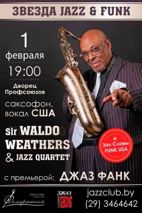 Джаз-Клуб Евгения Владимирова пригласил в Беларусь одного из лучших джаз-фанк музыкантов мира Sir Waldo Weathers, имя которого навсегда вписано в музыкальную историю 20 века.