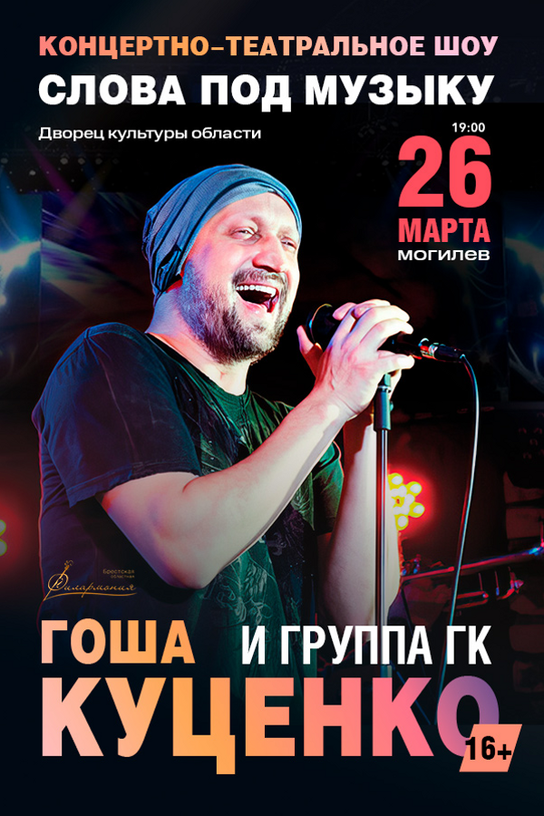 Гоша Куценко — заслуженный артист России, известный не только как актер, но и как талантливый музыкант. Его творчество сочетает в себе элементы Stand-up, поэзию и музыкальные композиции, что делает каждое выступление неповторимым. Группа ГК, с которой он выступает, добавляет в программу элементы театрального перформанса, создавая уникальную атмосферу на сцене.