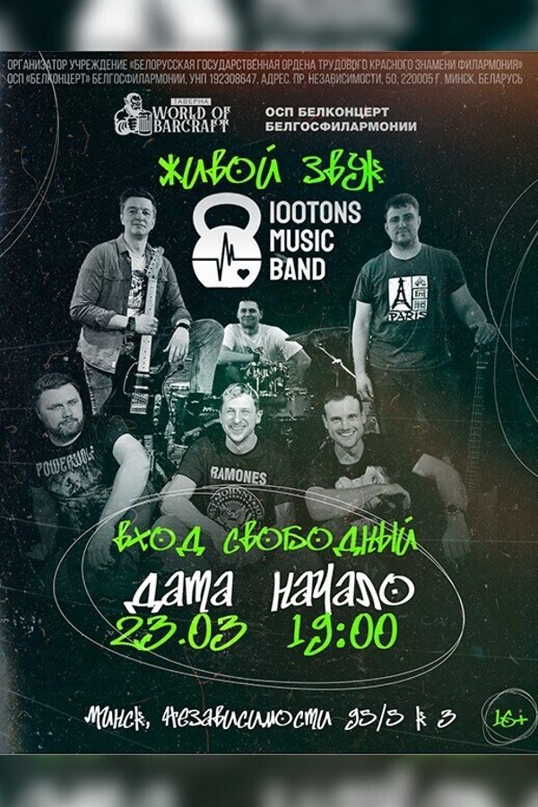 23 марта в 19:00 на сцене 100Tons Music Band — кавер-группа, которая раскачает вас проверенными хитами! От Blur до RHCP, от Depeche Mode до Отпетых мошенников — вечер обещает быть диким, громким и незабываемым!