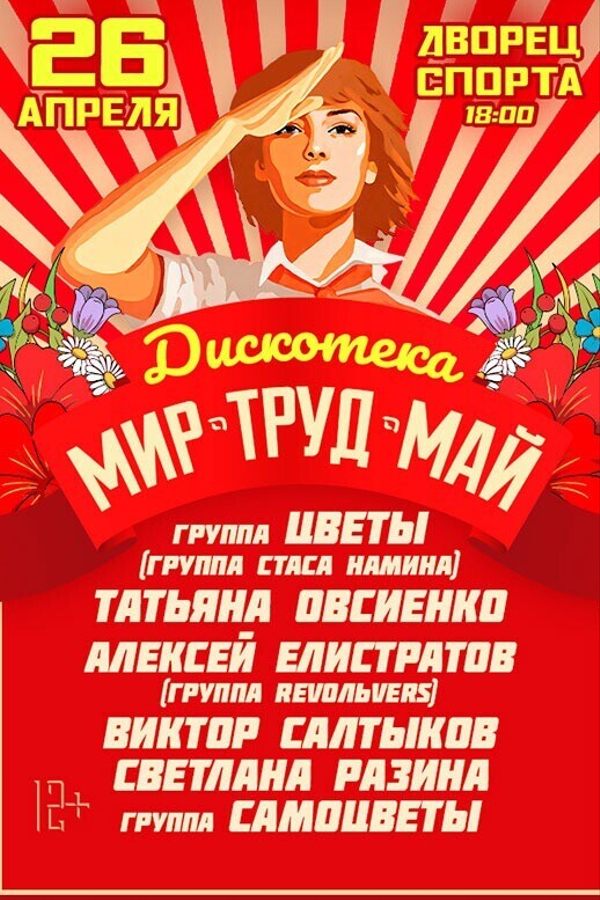 26 апреля на сцене Дворца Спорта состоится дискотека «Мир Труд Май»! Этот вечер станет настоящим праздником для всех поклонников популярной музыки того времени.