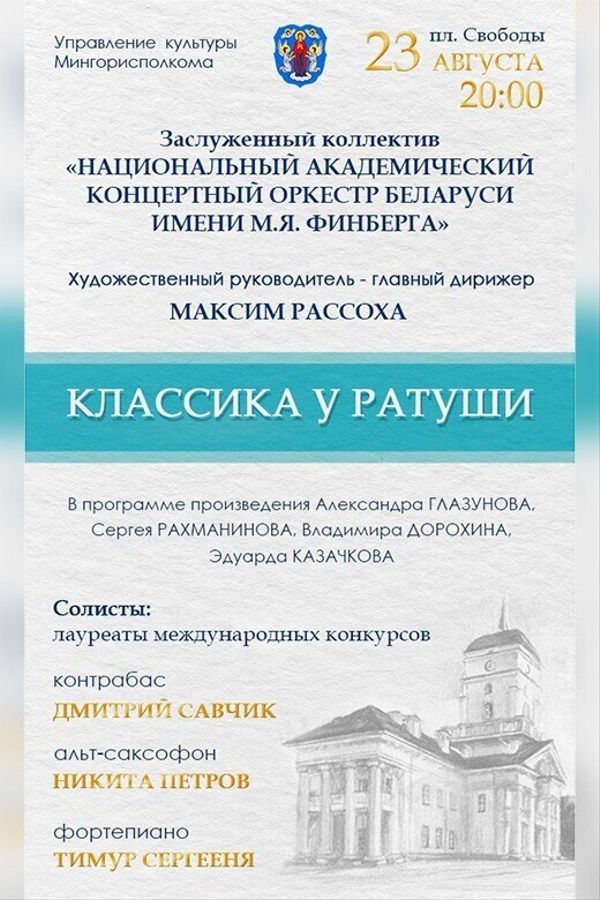Солистами выступят лауреаты международных конкурсов Дмитрий Савчик, Никита Петров и Тимур Сергееня (Бельгия).