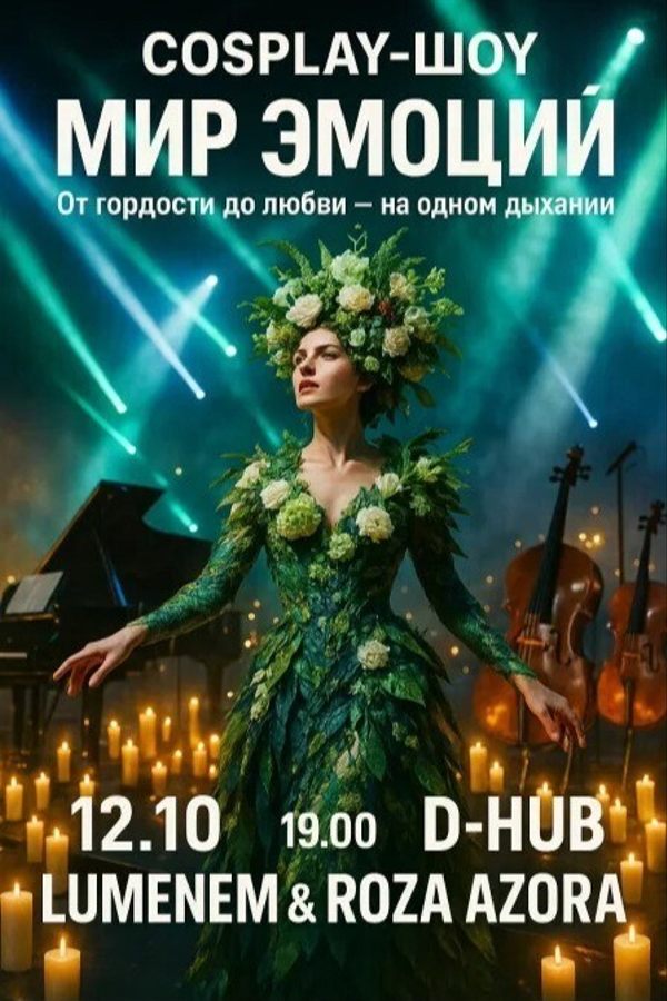Cosplay-шоу Roza Azora совместно с Lumenem — актёры и косплееры проживают каждую эмоцию: от величественной гордости, через детское удивление и радость, страх, гнев и грусть, до страсти, нежности, вдохновения и гармонии, кульминирующей в Любви. Свет, костюмы, движение и визуальные эффекты создают полное погружение в мир эмоций.