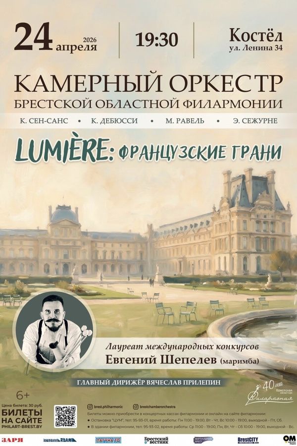В программе — Французская классика: Сен-Санс, Дебюсси, Равель. И одно особое произведение — современный концерт Эммануэля Сежурне, написанный специально для маримбы. В нём редкий инструмент раскрывается в полную силу.