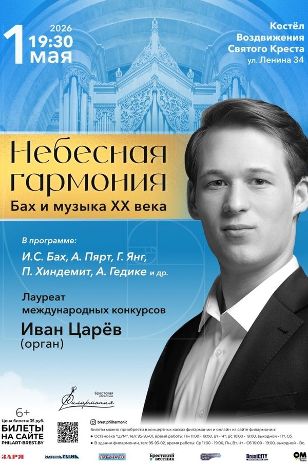 1 мая в 19:30 приглашаем всех ценителей органного искусства на концертную программу «Небесная гармония. Бах и музыка XX века», которая состоится в костёле Воздвижения Святого Креста в г. Бресте.