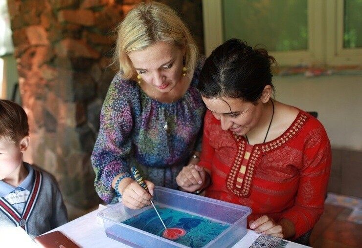 7. Рисуют все! В эбру можно поставить целью релаксацию и медитацию в процессе создания абстрактных картин, а можно отточить мастерство и создать живописные образы. Этот вид творчества помогает нестандартно мыслить и выражать свои эмоции в красках, объединяет людей любых возрастов и интересов, настраивает на одну волну...