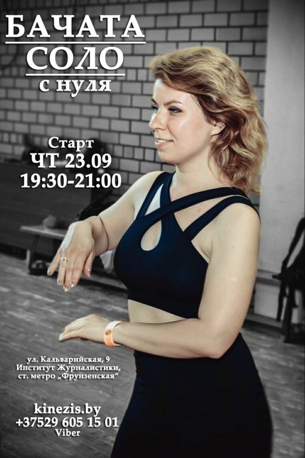 Занятия по Бачате соло будут проходить раз в неделю, по четвергам, с 19:30 до 21:00, тренер — Конон Марина.