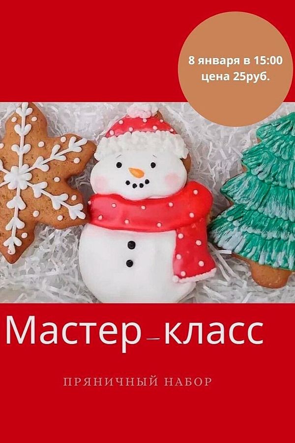 Приглашаем на мастер-класс «Пряничный набор», в который входит снежинка, ёлочка и снеговик.