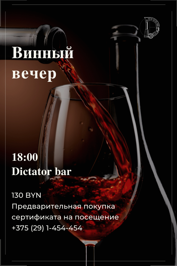 Посетить бар, созданный школой барменов, а также продегустировать известные сорта вин. Наш сомелье расскажет вам особенности и отличия вин из различных регионов, а также чем ценны для нас тихие и игристые вина. Что такое настоящее шампанское. Вы узнаете, как организовать свой домашний винный бар, а также хорошо проведете время в компании леди и джентельменов в аутентичном месте в самом центре Минска.