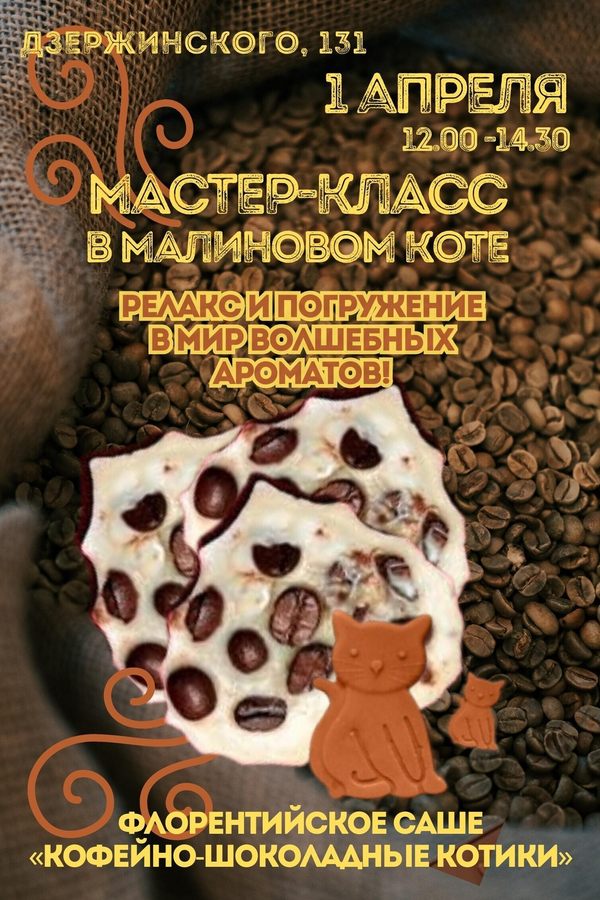 Мастер-класс пройдет в «Малиновом коте» 1 апреля с 12.00 до 14.30.