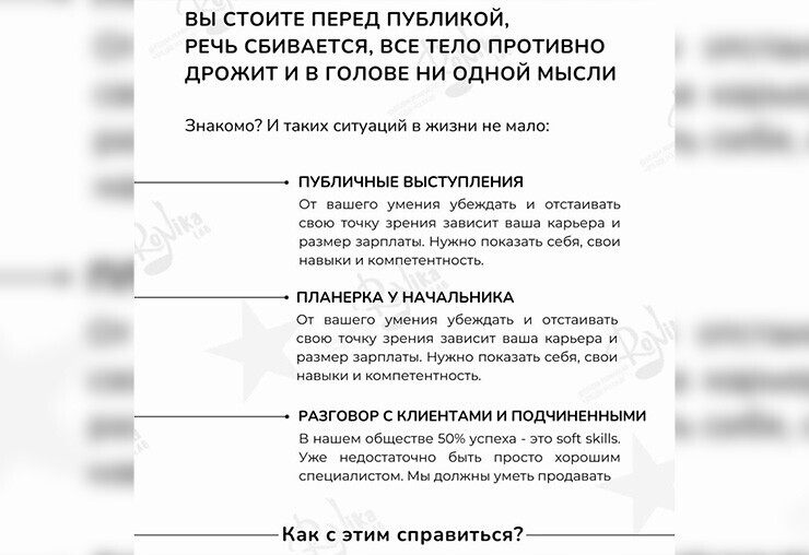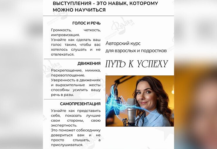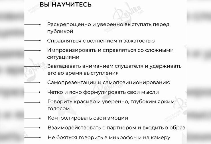 – Преодолеете страх выступлений и освоите техники раскрепощения.