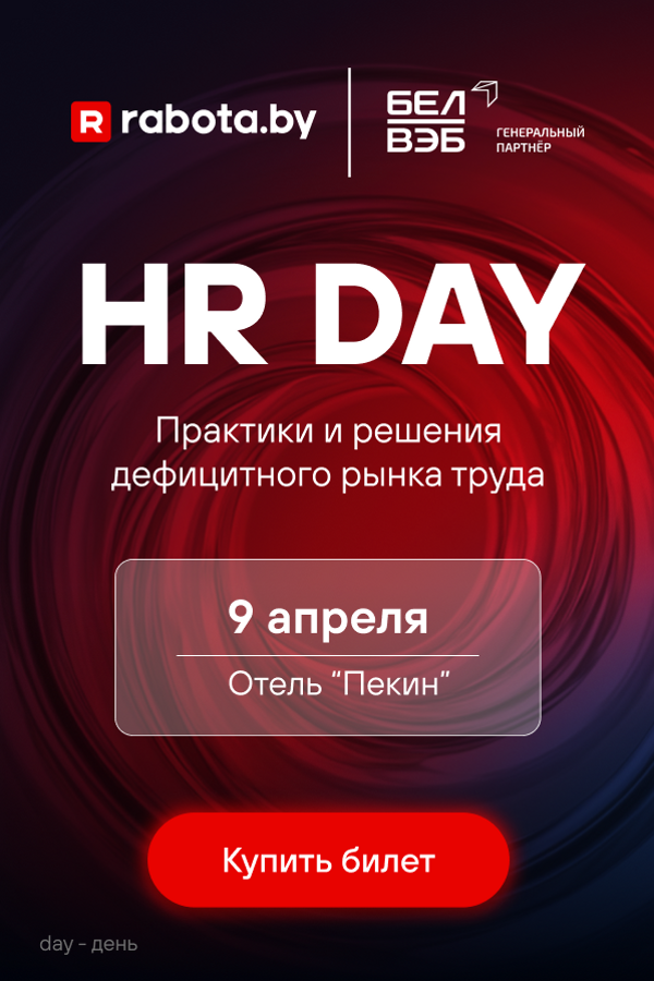 Конференция «HR DAY. Практики и решения дефицитного рынка труда» пройдет 9 апреля в Минске в отеле «Пекин». Организатор мероприятия: ресурс по поиску работы и подбору персонала rabota.by.