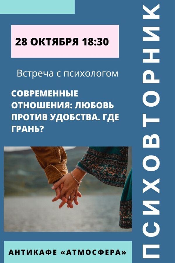 Приглашаем вас на Психовторник — место, где можно расслабиться, пообщаться с единомышленниками и получить поддержку в теплой и непринужденной обстановке.