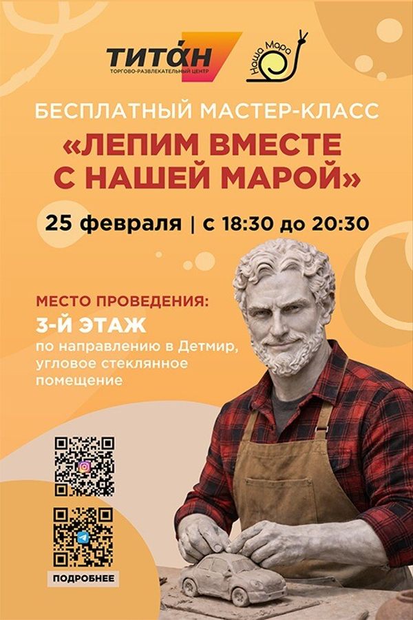 25 февраля мы ждём вас на бесплатном мастер-классе по лепке из глины — «Лепим вместе с Нашей Марой»!