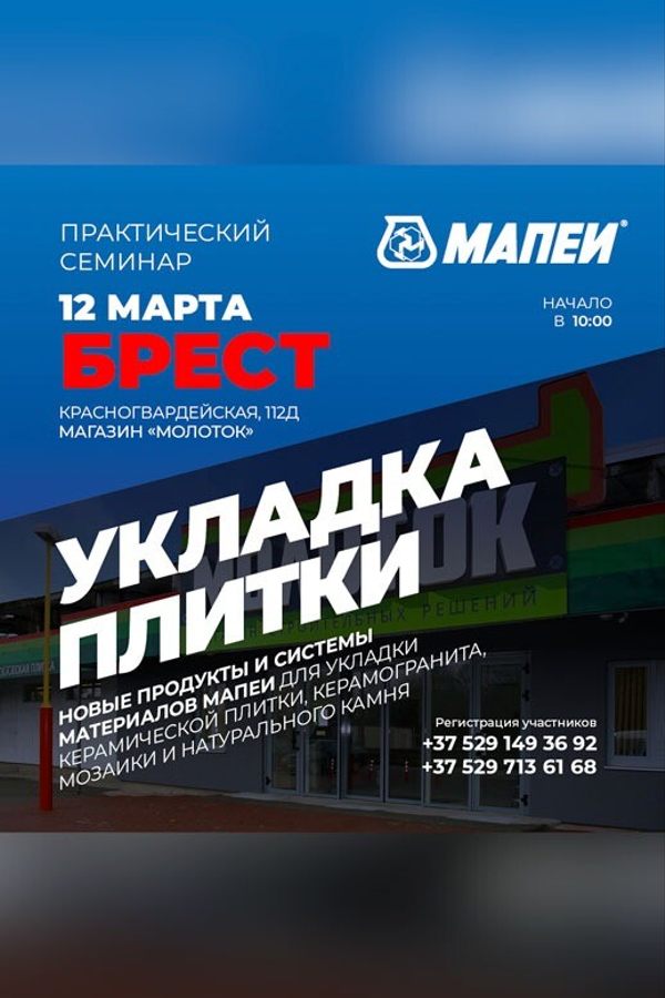 Компания МАПЕИ и магазин «Молоток» приглашают специалистов на практический семинар, посвященный новинкам в мире укладки плитки и камня.