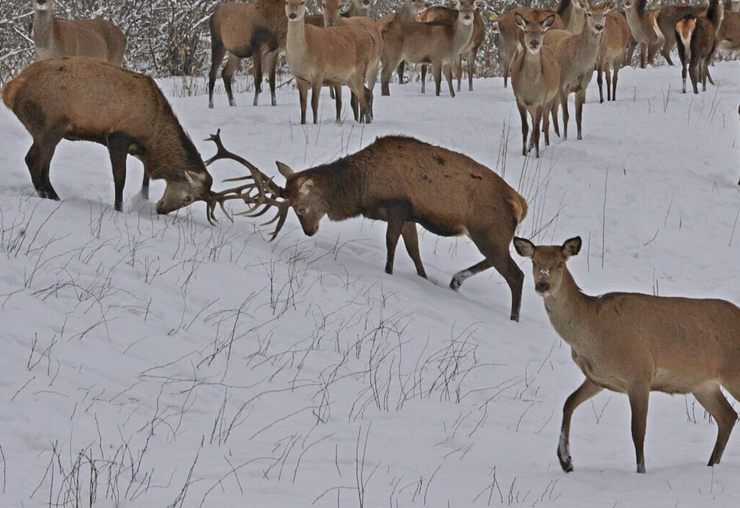Уже несколько лет в большом огороженном лесном массиве на территории национального парка формируется стадо диких животных — оленей, ланей. Здесь же поселились лоси, косули, бобры.