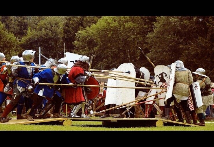 Главным событием второго фестивального дня станет полноконтактный конный рыцарский турнир на цельнодеревянных копьях по правилам XV века. Конные турниры такого уровня на сегодняшний день проходят на фестивалях лишь в нескольких странах мира. Во время поединков главной целью всадников будет попытка выбить противника из седла ударом длинного копья либо преломить копье о его щит.