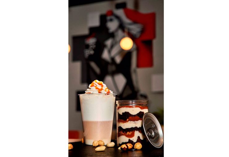 — Кофейня «Cofix» (32 адреса, смотрите на сайте фестиваля) — латте макиато с взбитыми сливками и карамельным топпингом. Дессерт в составе которого: шоколадный бисквит со сливочным кремом, прослойка из солёной карамели и обжаренные орехи