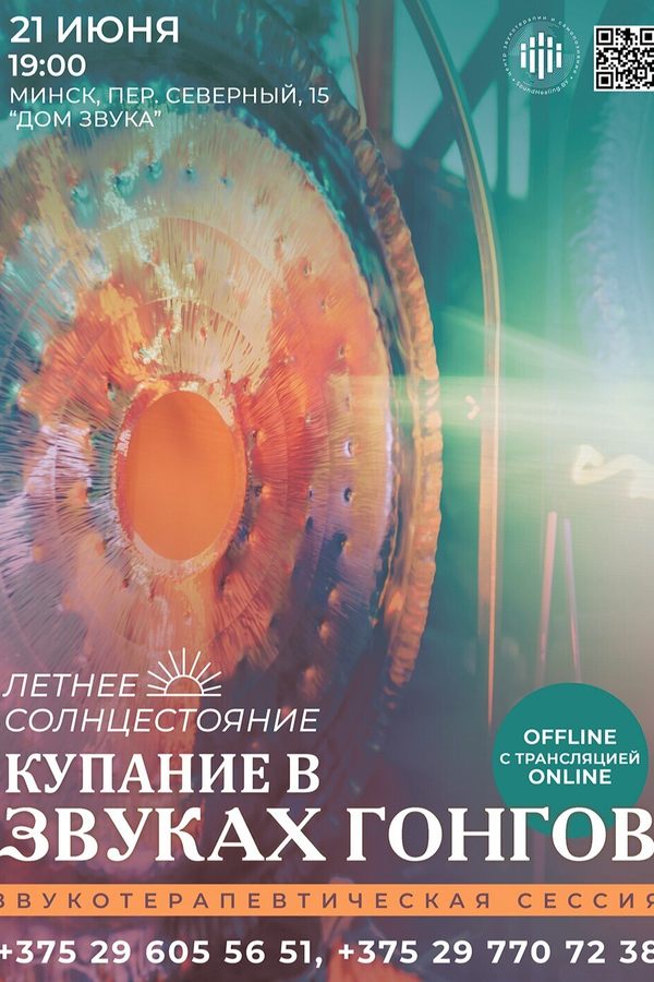 21 июня 19:00 - 21:00 - Купание в звуках гонгов. Приглашаем в «Дом звука SoundHealing.BY» (Минск, переулок Северный 15/1).
