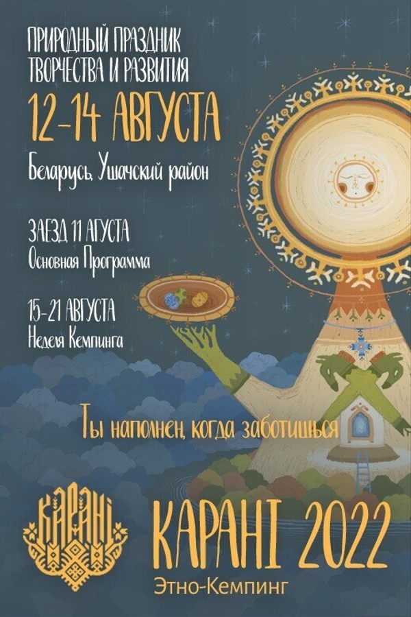 Этно-празднк «Каранi» — это пространство слияние всех стихий в каждом из нас! В красотах Белоруской природы возможность просто расслабиться, насладиться душевной атмосферой, общением и насыщенной программой лесного мероприятия. Для всеобщего комфорта запланированы постройки полевой кухни, сцены, душевых, волшебной ярмарки, арт-галереи и установка шатров и типпи. Команда организаторов верит в чудо и оно происходит!