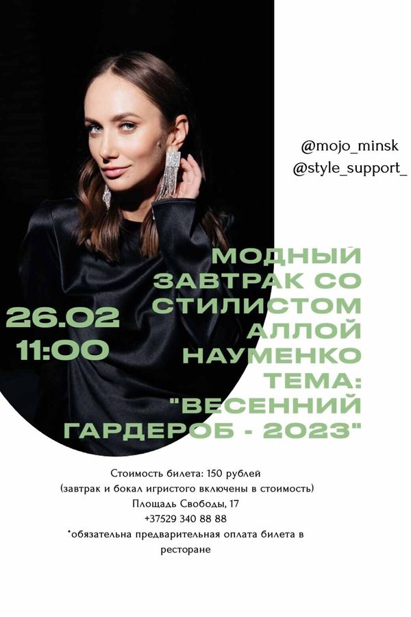 26 февраля в 11:00 в ресторане MOJO пройдёт модный завтрак с белорусским стилистом Аллой Науменко