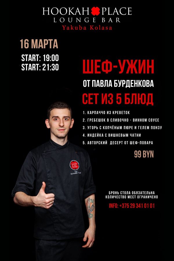 Приглашаем вас 16 марта на шеф-ужин от Павла Бурденкова!