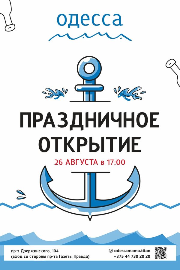 В эту субботу 26 августа состоится праздничное открытие городского кафе «Одесса-мама» в ТРЦ «Титан». Это будет большая Одесса-Мама в Минске — в два этажа на более 200 посадочных мест. На первом этаже предусмотрена игровая комната для детей.