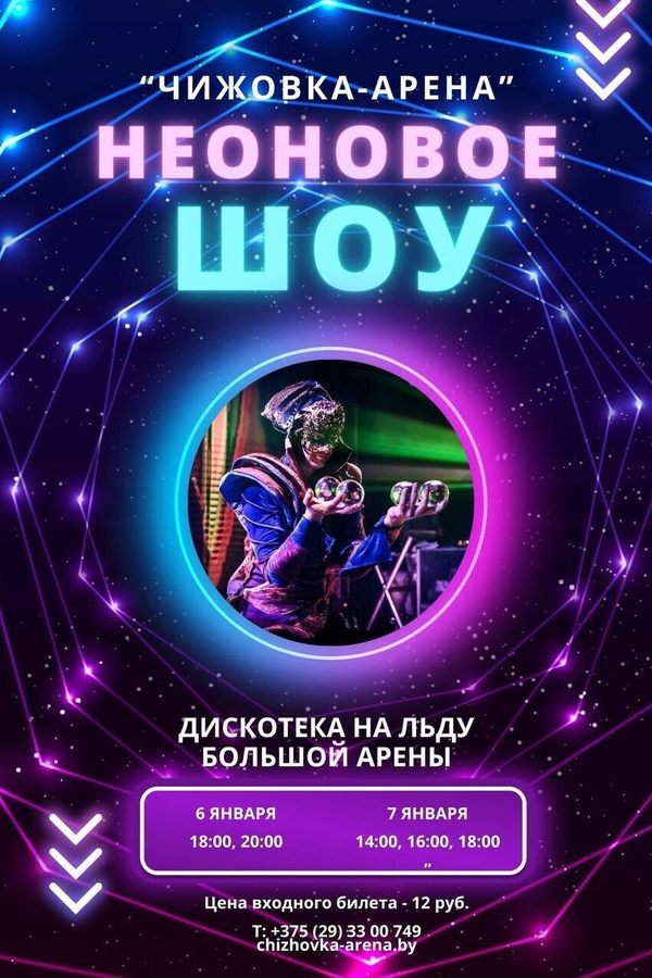 - неоновое шоу с хрустальными шарами в центре ледовой арены;
