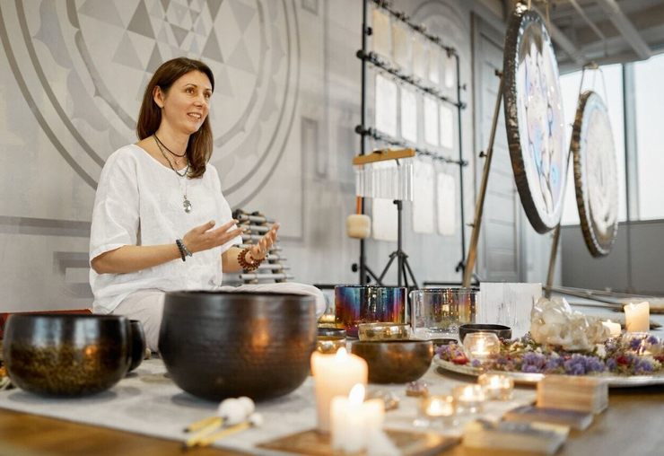 Звуковые практики с использованием Гонгов стихий: вода, земля, воздух; шаманских бубнов; храмовых, алхимических, тибетских чаш; плоских колоколов Жихарева и множеством других инструментов, собранных в студии для мощных, глубоких звуковых погружений.