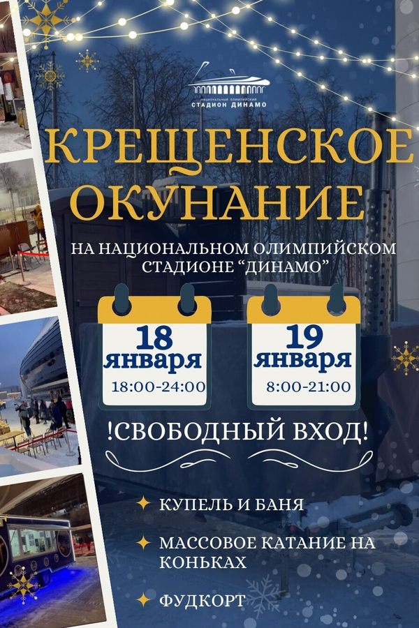 Национальный олимпийский стадион «Динамо» приглашает жителей и гостей столицы на мероприятие — «Крещенское окунание», которое состоится 18 и 19 января 2026 года.