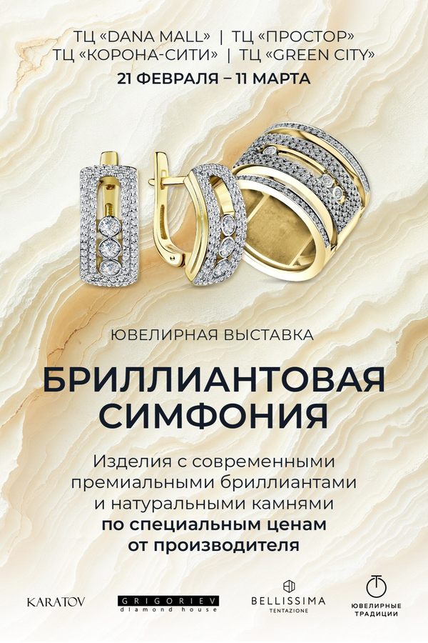 Выбирайте драгоценные подарки для родных и любимых к 8 марта уже сейчас! С 21 февраля по 11 марта приглашаем Вас на масштабную ювелирную выставку «Бриллиантовая симфония», которая пройдет сразу в 4 салонах ORO. Мы представим крупные и амбициозные российские бренды — экспертов в ювелирной сфере, известных безупречным качеством создаваемых украшений с бриллиантами.