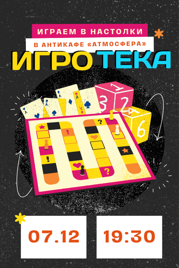 Приходите провести целый вечер в компании интересных и классных людей, увлеченных настольными играми. Мы играем в разнообразные настольные игры, и каждый сможет найти что-то по душе.