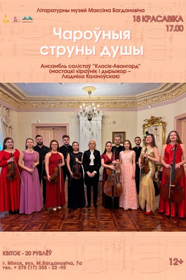 Запрашаем вас у Літаратурны музей Максіма Багдановіча на чарговую сустрэчу з прыгожым — шэдэўрамі класічнай музыкі ў выкананні выдатнага калектыва.