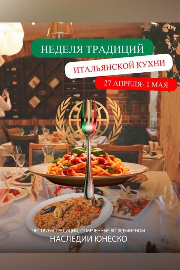 Специальный сет «Юнеско»: Шеф собрал в одном предложении квинтэссенцию итальянских традиций (закуска + горячее + напиток).