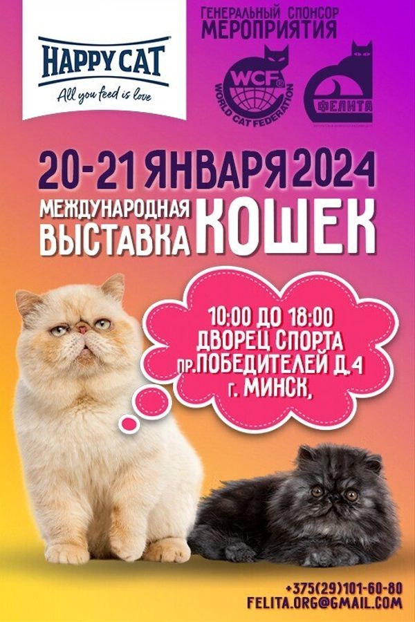 Белорусский Фелинологический Центр «ФЕЛИТА» представляет Международная выставка кошек «Январский котофест 2024».