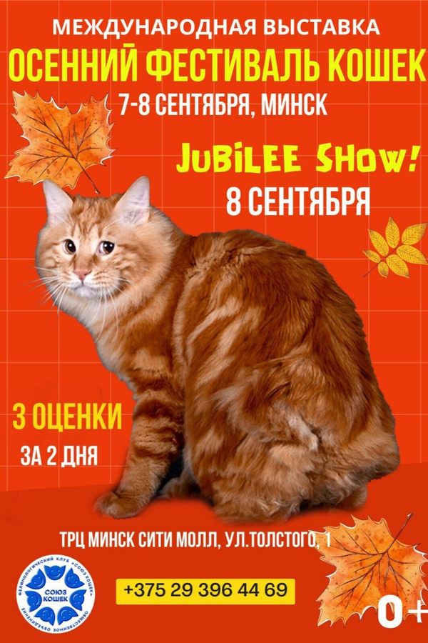 Приглашаем 7 и 8 сентября 2024 г. на Международную выставку котят и кошек в ТЦ Минск Сити Мол, второй этаж.