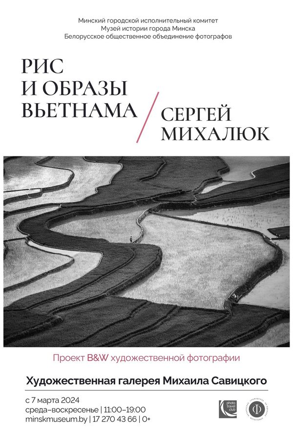 6 марта 2024 года в 18.00 в Художественной галерее Михаила Савицкого состоится открытие проекта B&W художественной фотографии «Рис и образы Вьетнама» члена Белорусского общественного объединения фотографов, Союза фотохудожников России Сергея Михалюка.