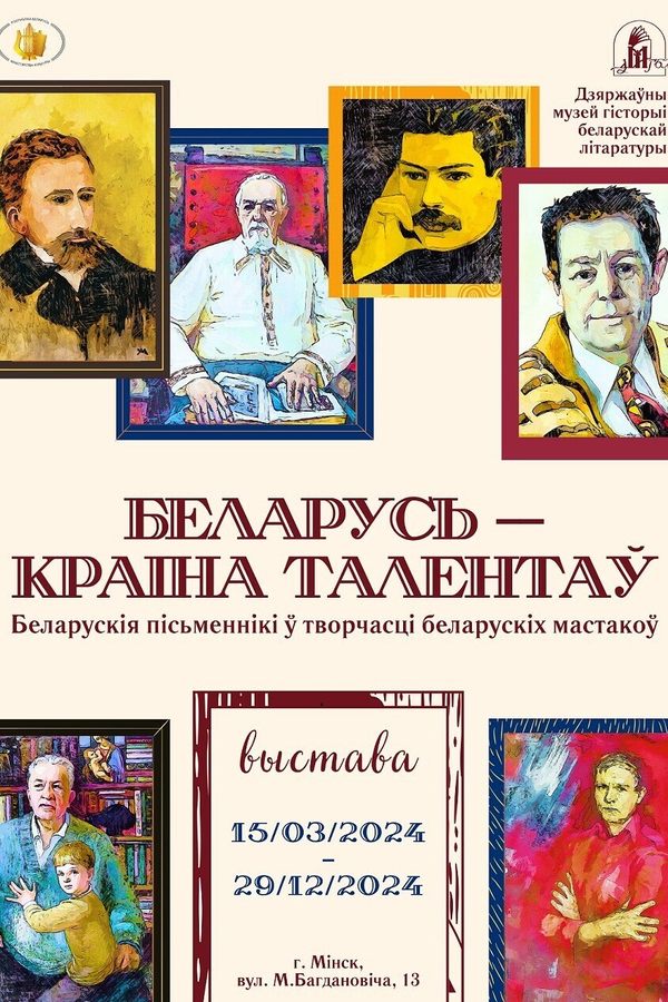15 сакавіка 2024 года у Дзяржаўным музеі гісторыі беларускай літаратуры распачне працу часовая літаратурна-мастацкая экспазіцыя «Беларусь — краіна талентаў. Беларускія пісьменнікі ў творчасці беларускіх мастакоў». Адкрыццё — а 17-й гадзіне.