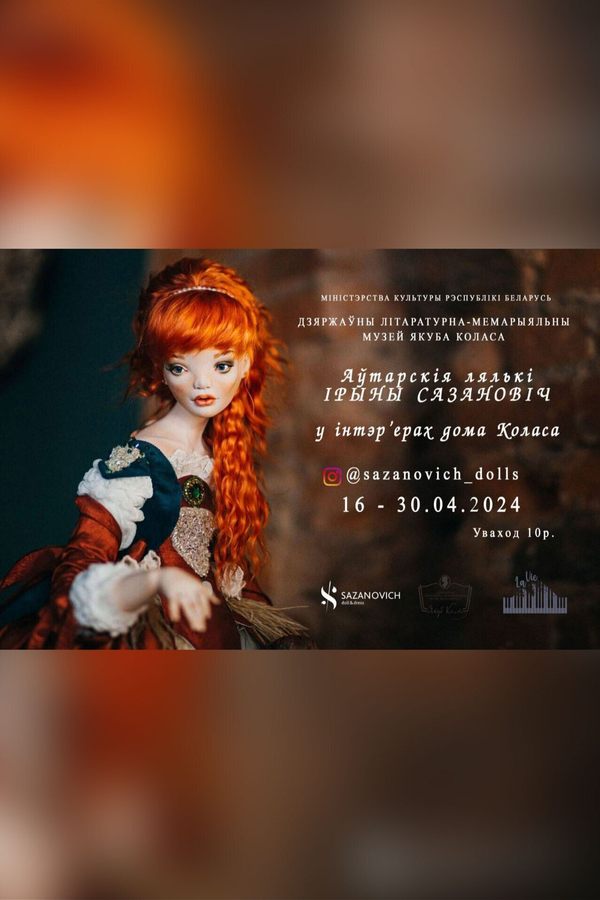 З 16 па 30 красавіка 2024 года Дзяржаўны літаратурна-мемарыяльны музей Якуба Коласа запрашае на часовую экспазіцыю аўтарскіх лялек Ірыны Сазановіч.