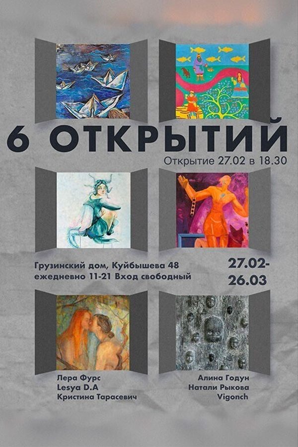 27 февраля в 18:30 в Грузинском доме (Куйбышева 48) откроется проект «6 открытий». Выставка продлится до 26 марта.