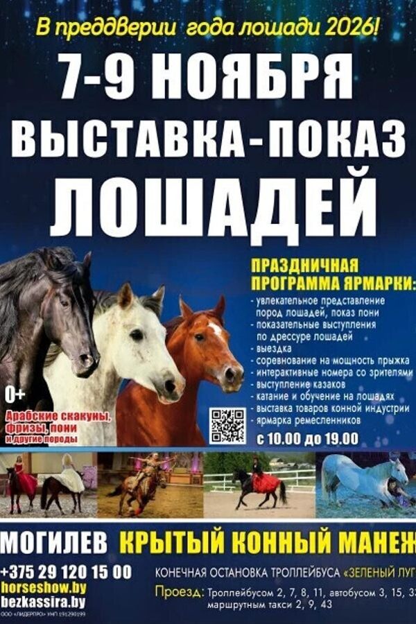 В большие осенние выходные — 7, 8, и 9 ноября — в Могилёве, в Крытом конном манеже по адресу: Могилевский район, Буйничский с/с, 19, южнее д. Городок, пройдет Международная выставка-шоу породистых лошадей «Осень-2025» с обновленной программой!